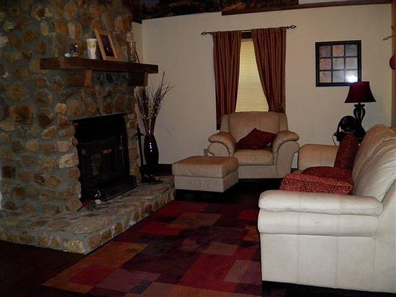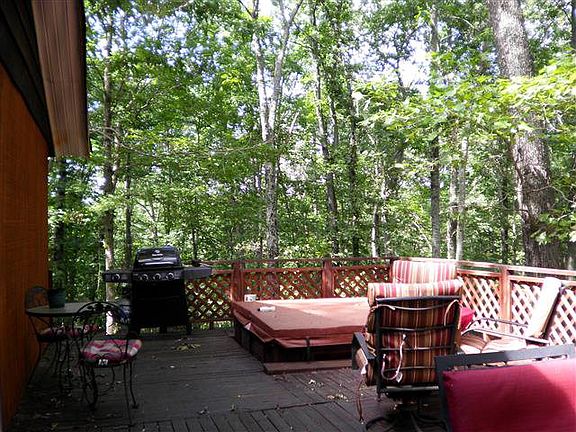 Log Home/Quiet Country on 5 acres+/-; one bedroom, bath and loft upstairs, stone fireplace w/gas logs in living room, man cave;perfect for everyone, huge deck w/hot tub for entertaining, detached garage/workshop.