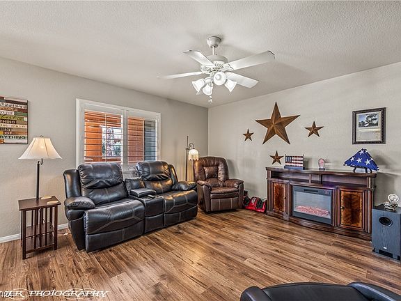 Welcome to The Falls Hillside Villas. This gorgeous condo is an upstairs unit that claims one of the best locations in the community....just steps away from the green space parks, & pool & hot tub area. The large covered patio offers a great space to enjoy beautiful sunrises & sunsets or retreat inside & appreciate the well designed 2 bedroom and 2 bathroom floor plan. This condo has been upgraded with new LVP flooring that runs through the majority of the home (carpet in the bedrooms and tile in the main bathroom), plantation shutters on all the windows, and a new tile surround in the main bathroom. AND, for your convenience, the home is being sold with the majority of the furniture, including the main bedroom King Size bed with incline and massaging features. Owner HOA dues include all landscape maintenance, sewer and garbage collection, and Falls Hillside Villas Community amenities as well as access to the Mesquite Vistas Sports Complex Amenities.