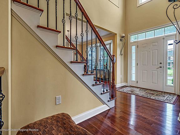 SPECTACULAR VAN GOGH model is ready and waiting for you!! STUNNING two story foyer w/picture molding, staircase w/wrought iron railings,open to formal living room w/vaulted ceilings, GLEAMING HARDWOOD FLOORS which are through out most of the first floor,formal dining room w/wainscott/picture molding, rec lights located directly off the kitchen. GORGEOUS GOURMET KITCHEN, w/CENTER island that features an over hang for extra seating, HUGE dining area, rec lights,double wall oven, gas cook top, all stainless steel appliances,GRANITE counter top, GLASS TILE backsplash, over sized sink,42' cabinets w/crown molding, self close drawers, pantry. BEAUTIFUL SUN ROOM is situated off the kitchen w/all windows for natural light, slider that leads to rear yard,rec lights. FAMILY ROOM is OPEN to kitchen