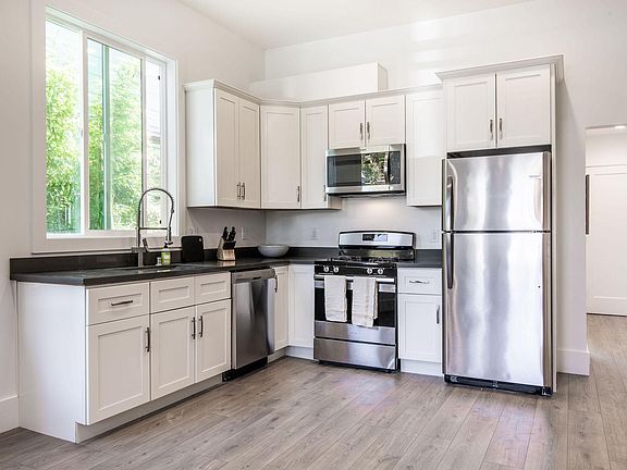 The kitchen is equipped with everything you need, including Stainless appliances (Microwave, Dishwasher, Stove/Oven), and a big gorgeous window overlooking a grove of tall bamboo.