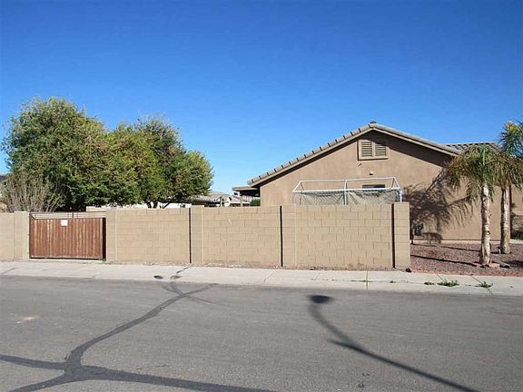 This Beautiful Valle Del Sol home built in Somerton Arizona offers 3 bedrooms and two bath split floor plan. This home has custom shutters throughout there house. The master bathroom had double sinks and tile shower. The property sets on a corner lot with a side drive through gate. This home has a concrete pad in the backyard so you can work on your desert toys or extra vehicle parking. This home is a must see for the price.