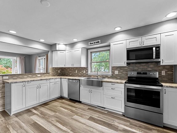 4 Bedroom 2 Bath brick home on a fantastic .87 acre lot! Brick 2.5 car garage with workshop AND 24x30 pole building. This home features a NEWER kitchen with white cabinetry, tile backsplash & stainless steel appliances. Open concept living, dining & kitchen with luxury vinyl flooring. Main level with newer bathroom and 2 carpeted bedrooms. Upper level with 2 bedrooms. Lower level finished with spacious drywalled rec room with tile floor & full bathroom with tub/shower. Awesome deep level yard with patio area, shade trees, and landscaped flower beds. Many updates throughout including windows.