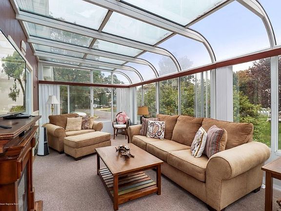 This home has charm and character! Come view this quaint 2 Bedroom home located on a gorgeous spacious 100x245 treed lot. This amazing property has lots of room to grow and beautiful rustic features! Relaxing Front Porch; Dining Rm has hardwood flooring, wood burning fireplace, beamed ceilings, bay window and bar area; Living Room w wood flooring, crown molding and skylite; Amazing Sun Room with sliders leading to the back yard; Eat-in-Kitchen with full appliance package, Mud Room with washer dryer and door to back yard; nice sized bedrooms; additional living space with a workshop, laundry room and tons of storage. Enjoy your tranquil back yard oasis featuring nice sized decking, 3 sheds and a park like setting! Located on a quiet street leading to a cul de sac! This home is a must see!