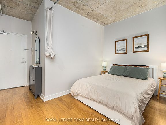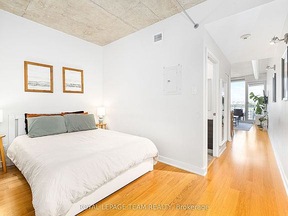 First time offered by the original owners! This rare Madrid layout in Central 1 offers one of the most unique and desirable floor plans in the building. This stunning 1 bed + den condo features sweeping southwest-facing views, floor-to-ceiling windows, and a sun-soaked private balcony perfect for morning coffee or evening unwind. The industrial-chic aesthetic includes exposed concrete ceilings, ductwork, and columns, paired with warm hardwood floors and sleek finishes. The modern kitchen boasts stainless steel appliances, flat-panel cabinetry, tile backsplash, and breakfast bar seating. A bright den offers ideal WFH potential, while the spacious bedroom includes generous closet space. The bathroom is fresh and contemporary with a deep soaker tub and stylish vanity. Private storage locker included and parking is available for additional price. Enjoy top-tier amenities: concierge, gym, party room, theatre, and courtyard. Exceptional value in one of Ottawas most walkable neighbourhoods. Plan to visit soon!