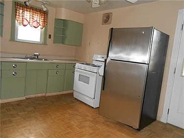 This home is situated on a double lot with a large deck and a detached garage. Spacious kitchen with plenty of cabinet space and dining area nook. This home needs TLC, but has tons of potential.