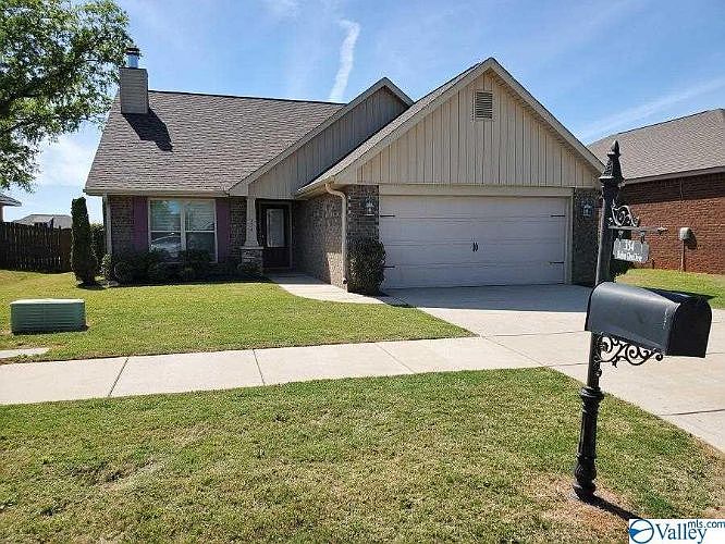 What a nice open floor plan home in River Landing. All three bedrooms in this split floor plan home have walk in closets and two inch blinds. The kitchen offers stainless appliances and an island open to the living room and dining area. The Owners' Suite has a trey ceiling and a glamour bath with dual vanities. Enjoy cooking or relaxing on the covered patio with an extended uncovered patio. Fully irrigated yard with a privacy fence and ready to move in! Easy commute to shopping, Redstone Arsenal and the airport.