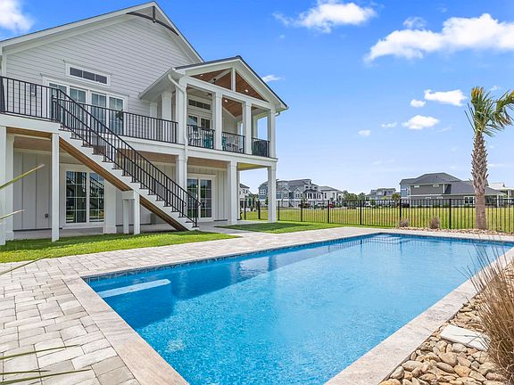 Experience the epitome of luxury living in this second row waterway custom built home that's only a few months old! This exceptional property offers an unparalleled array of features, including a temperature controlled pool and fenced yard that overlook a serene pond, perfect for entertaining or relaxation. Boasting elegant hardwood floors, a cozy fireplace, and an expansive 4-car garage, this home effortlessly combines luxury with functionality. The gourmet kitchen, complete with high-end natural gas appliances, quartz countertops, and abundant cabinet space, is a haven for culinary enthusiasts. The open floor plan seamlessly connects the kitchen, living area, and outside deck, creating an inviting space for gatherings and everyday living. The master suite embodies a large bedroom with a beautiful private bathroom attached that boasts high end tile floors and an opulent 3 way shower system. The walk-in closet with custom shelving will make your jaw drop! The first floor level offers versatility with additional living space, perfect for movie nights, game tournaments, or impromptu jam sessions, with an additional oversized bedroom (which could act as a second master bedroom) that has direct access to the pool and its own bathroom. Beyond the doorstep lies the charm of a gated community, where you can enjoy the scenic boardwalk, to watch passing boats against the backdrop of stunning sunsets. For boat advocates, the community's private boat ramp and storage area provide easy access to water activities on the intercoastal waterway. And nestled within is a hidden gem: a serene wooded walking trail, ideal for family outings or leisurely strolls with your pets. With its prime location and impeccable features, this home embodies the essence of luxury coastal living. Explore this pristine gem, just a few months young, with full warranty coverage for peace of mind and carefree living. Don't miss the opportunity to embrace the best of Myrtle Beach – schedule your private tour today at Boardwalk on the Waterway!