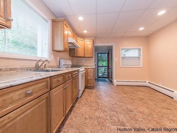 2-3 bedroom home in the city of Kingston has been recently updated and ready for you to move in. As you approach the home you will first notice the great rocking chair front porch which is great to sip your coffee on or read the paper. As you enter into the front door you will be taken back by the large open floor plan this home has to offer along with the newly installed wood-style flooring, and fresh paint. Large eat in kitchen with new counter tops, laminate cabinetry, updated light fixtures thru out. Utility room off the kitchen and large half bath with new toilet and vanity. Newly carpeted stairs leads you to the large bedrooms and remodeled full bath. This home has one large bedroom with walk in closet and there is also another 2 bedrooms which you have to walk thru one in order to get thru the others. This would be great for a nursery, or home office or gym, even the biggest closet you could ever ask for. Out back the yard is fenced in with seperate studio/shed complete with electric. This home needs to be seen in order to appreciate.