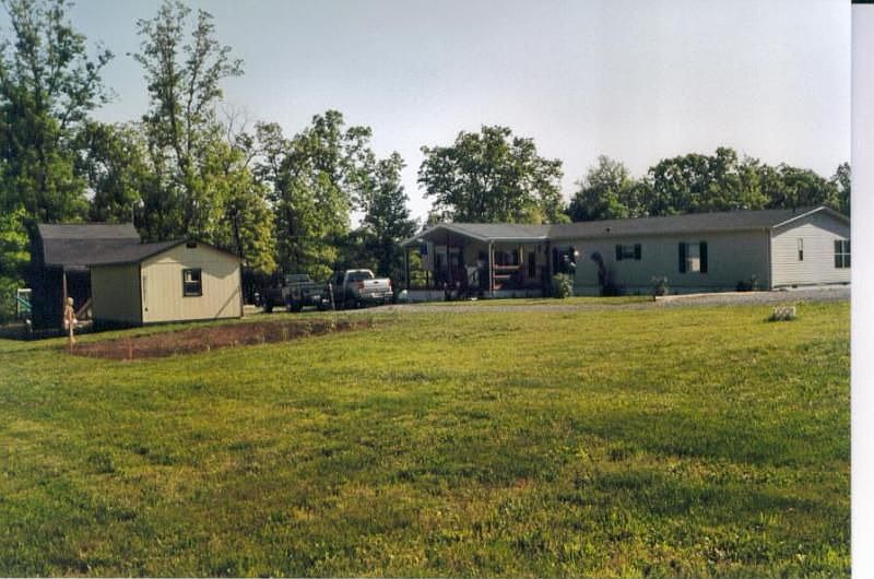 One level main with pond/wooded view from sunroom; Small basement/storm cellar/root cellar (300sq. ft.) under one car attached garage; Garage & storage building-864 sq.ft.; 2nd storage building-300 sq.ft.; 2000 gallon rainwater cistern; Garden area; Apple trees; Blueberry & blackberry bushes; Grape vines; 10.4 acres. Developed RV site including propane/sewer with insulated metal roof covering & wooden stairs.