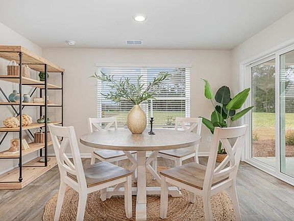 The Aria is one of our most popular floor plans. This home offers one story living with an open concept kitchen/living/dining areas. The kitchen is equipped with plenty of cabinet space, a large island, roomy pantry and stainless appliances. The owner's suite is nestled in the back of the home giving separation from the guest rooms. You will enjoy the covered back porch off from the dining area when you can enjoy the coastal air. This home comes complete with 2 inch faux wood blinds on all standard windows and the convenience of our smart home technology. This is America's Smart Home! Each of our homes comes with an industry leading smart home technology package that will allow you to control the thermostat, front door light and lock, and video doorbell from your smartphone or with voice commands to Alexa. *Photos are of a similar Aria home. Pictures, photographs, colors, features, and sizes are for illustration purposes only and will vary from the homes as built. Home and community information, including pricing, included features, terms, availability and amenities, are subject to change and prior sale at any time without notice or obligation. Square footage dimensions are approximate. Equal housing opportunity builder.