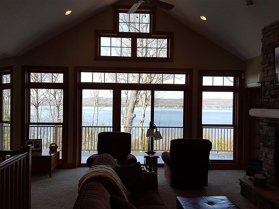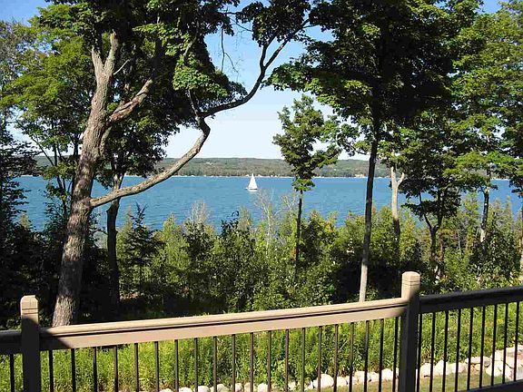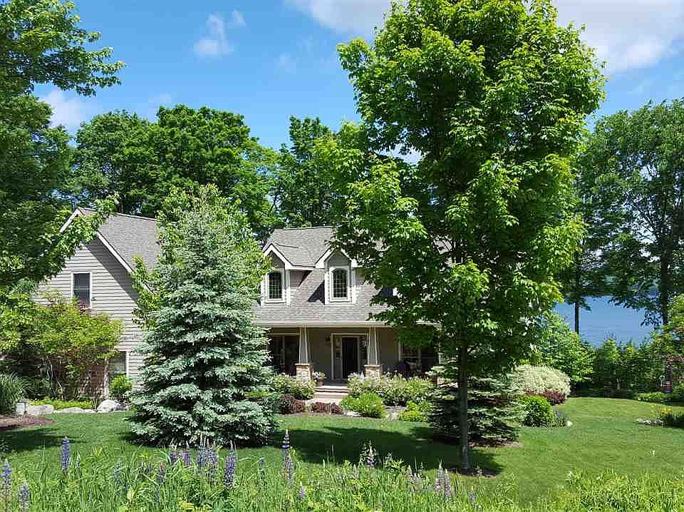 Gorgeous 4 bedroom, 3 bath home with 100' of Lake Charlevoix frontage and huge elevated water views. The interior is bright and crisp with fresh neutral colors and custom woodwork throughout. Everything is done right - simple, clean lines, high-end finishes, and an open, easy floor plan. Outdoors is equally alluring with picturesque landscaping including a stream, mature perennial gardens, outdoor living areas, walking/golf cart path to your private Lake Charlevoix waterfront and unbeatable views. Perfect!