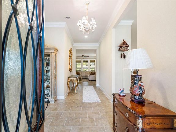 Experience the amazing Active Adult Del Webb lifestyle with our 14,000 square foot clubhouse with indoor & outdoor pool; fitness center; full-time lifestyle director & more. Community has access from both 1488 & Research Forest. The beautiful gated community remained free of flooding during recent Harvey storms. Home features large study, wood floors, large open gourmet kitchen with granite countertops, huge island, farm sink, and Kitchenaide Double Stainless Steel Ovens. Tray ceilings in gathering room, adjacent sunroom, and attached screened in patio with Fire Magic Grill, refrigerator, and sink. This single-story layout offers a guest suite as well as a spacious Owner's Suite with Jacuzzi tub, double vanities, and huge walk-in closet with custom built-ins. Upgrades include utility room with sink, custom cabinets, plantation shutters, crown molding, lush landscaping, travertine flooring on front and back porch.