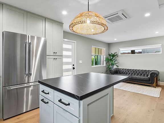The gourmet kitchen features sleek porcelain countertops, a spacious island, and premium Thermador appliances. Located just west of 17th Street and bordering Newport Heights, the home provides convenient access to an array of popular shops, dining, and entertainmentall within a short walk.
