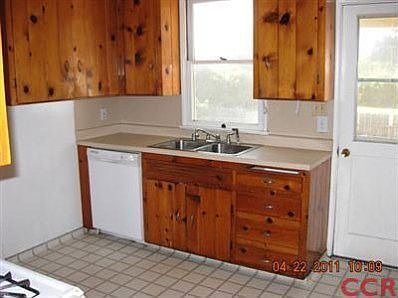 Bank owned home sits above the street on a large lot and is three bedroom, one bath and apx 1,168 sq ft per County records with a detached two car garage.