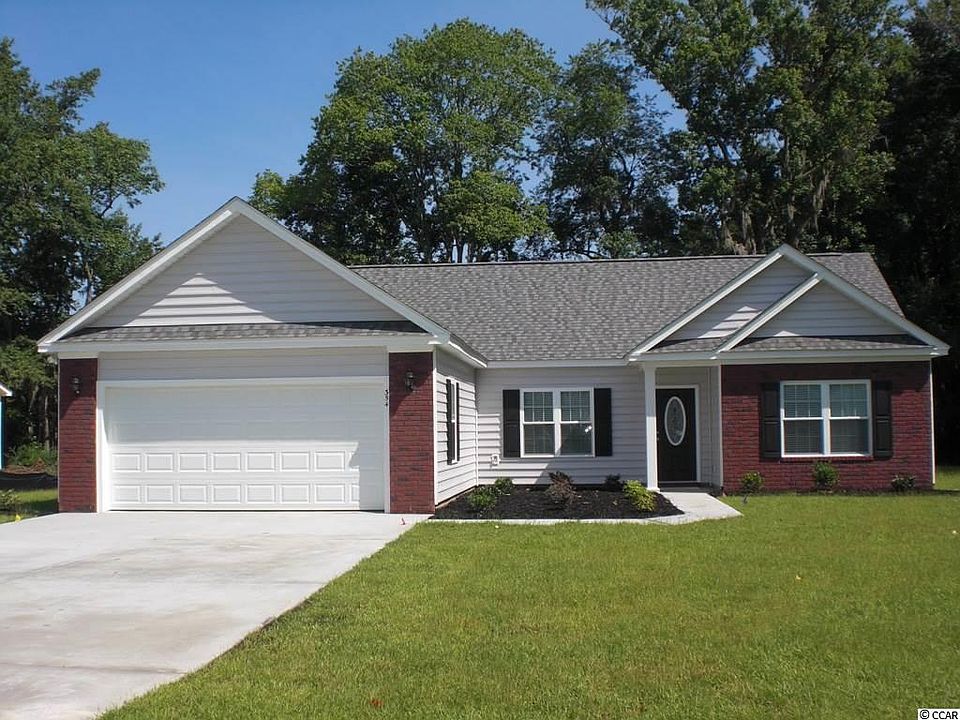 One of Beverly Homes Premier Communities in the Conway area, The Kingston Model has a split bedroom Floor plan with 3 BR, 2 BA. Sunroom, Irrigation system, mop sink in garage, Stainless steel appliance package including microwave, dishwasher and Range, custom profiled cabinets with crown moldings, Vaulted ceiling in the Living room and Dining Room, Private Master Suite features tray ceiling, walk in shower, large walk in closet and linen closet. Also includes a Breakfast Nook, Large 21' X 23' garage with garage door opener and remotes. Large outside corner lot. Exterior features include 50 year optional warranty on roof, brick accents on front of home, full landscaping package including sodded yard with up to 14 Pallets of sod and bedding, and shrubbery. Tanglewood is highly desired neighborhood minutes from downtown Conway and 30 minutes to the beach. Easy access to shopping dining and all amenities. Call or visit our sales office today.