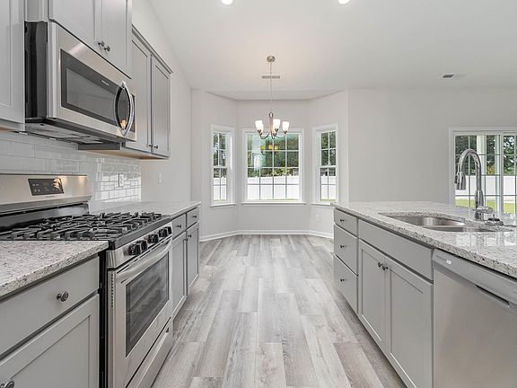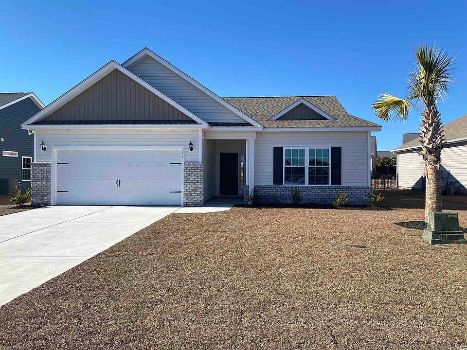 This home is complete and move-in ready. Photos are from a similar home. Golf cart to the beach from this beautiful Seascape floor plan on a pond lot. Building lifestyles for over 40 years, we remain the premier home builder along the Grand Strand. We’re proud to be the 2021, 2022, 2023, and 2024 winners of both WMBF News' and The Sun News Best Home Builder award, 2023 and 2024 winners of the Myrtle Beach Herald's Best Residential Real Estate Developer award, and 2024 winners of The Horry Independent’s Best Residential Real Estate Developer and Best New Home Builder award. This terrific open floor plan, 3 bedroom, 2 full bath home has LVP flooring throughout - no carpet. Stainless appliances, marble-look quartz breakfast bar and counters, a cast iron farm sink, subway tile backsplash and pendant lights over the kitchen island combine to give you the wow factor you're looking for. Abundant recessed lighting, double windows in the adjacent dining area and a full glass sliding door flood the home with light. The glass door in the dining room leads to the covered rear porch and additional patio, with a fully-sodded backyard and the pond beyond. The spacious owner's retreat features a long vanity with quartz counters and dual undermount sinks, an oversized walk-in shower, plenty of storage in the huge walk-in closet, plus a tray ceiling and ceiling fan. Two additional bedrooms and a full bath are tucked off on their own hallway, for privacy. All of the homes in Ocean Palms come standard with the luxury of natural gas (tankless water heater, gas heat, and gas range). The two car garage is completely trimmed and painted, with a wifi-enabled garage door opener, and floored attic storage space accessed by drop-down stairs. Ocean Palms is conveniently located near shopping, restaurants, schools, world class medical offices and hospitals, and is only a short golf cart ride to Surfside Beach's gorgeous beach and the beautiful Atlantic Ocean. Community pool and cabana.