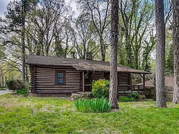 Rustic log cabin with the convenience of downtown! Home offers a large living room with fireplace, screened porch off the back for relaxing, a rocking chair front porch & plenty of trees for privacy. Great potential for rental income! Located directly across the street from Lindley Park Elementary School. Home being sold As-Is.
