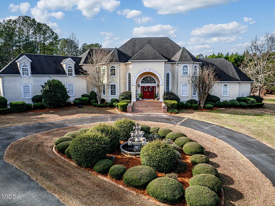 A true showpiece, this stunning luxury estate is approached by a long, private drive that leads to an impressive grand entrance. Upon arrival, you are immediately captivated by the elegant, symmetrical curved staircase that sets the tone for the sophisticated design found throughout the home. Situated on nearly seven acres in one of the most desirable locations in town, this expansive two-story residence offers refined living at its finest.