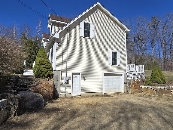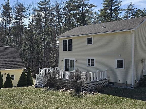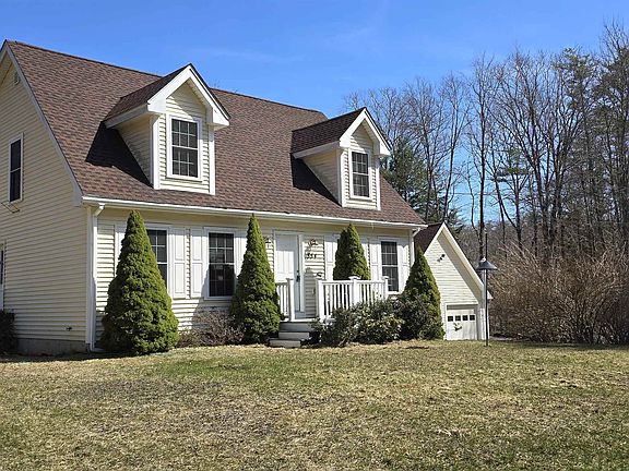 Well cared for 1.75 Story Cape with 1-car under, 2-car detached (insulated and sheetrocked) and carport/storage tent situated on 3+ acres boasting stone walls and custom stone steps, fire pit, fenced in garden area and new oversized Trex deck off the kitchen leading to the back yard. Spacious eat-in-kitchen offers maple cabinetry, Quartz countertop, tile back splash and island. Just off the kitchen hall is a pantry, double coat closet and half bath/laundry. Good size living room and dining room complete the first floor. Second floor showcases master bedroom with walk-in closet, oversized bathroom (accessible from primary bedroom and hall) with soaking tub and separate shower. Two additional good size bedrooms. Great location, closes to Crystal Lake, skiing and lakes region amenities!