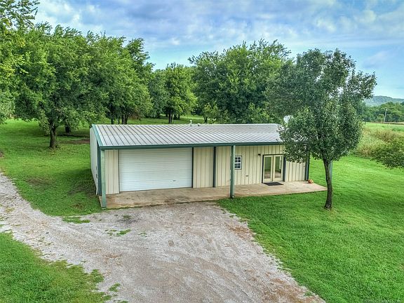 Get away to your rustic metal cabin on 5 acres with a pond just 25 minutes South of Tulsa Hills. Fully equipped with all appliances, this home is freshly painted and move-in ready! Multiple offers rec'd. Highest and best due 8/22 5pm.