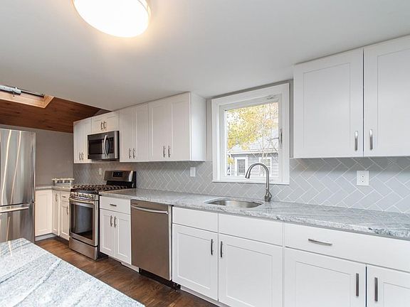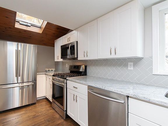 - Kit Dscrp: Flooring - Hardwood, Countertops - Stone/Granite/Solid, Cabinets - Upgraded, Skylight, Kitchen Island, Stainless Steel Appliances, Remodeled, Gas Stove