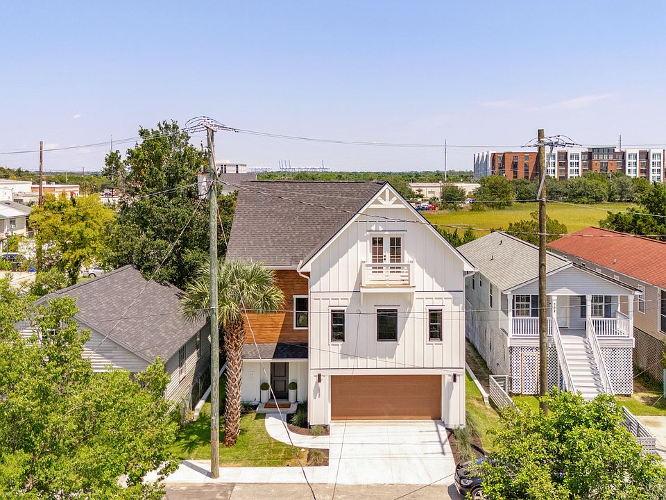 Welcome to this beautiful new construction in downtown Charleston, close to the NOMO area. This property boasts marsh and stunning views of the Ravenel Bridge. Spacious open concept that is ideal for entertaining, natural light, and european white oak flooring throughout. As you step through the door at ground level you will find a drop zone and space for storage. Walk up the steps to the first floor to find an additional catch all space. The primary bedroom on the main floor has an en-suite with zero entry shower and dual vanity. Second floor has 2 bedrooms with shared zero entry bath. One bedroom has a large walk-in closet and a Juliet balcony. This home has a 3-4 car drive under with a separate space for a golf cart. Walking distance to all that downtown has to offer.In addition, the home offers a screened in porch, irrigation system, trane air conditioning system, spray foam in the roofing area and 2-10 home buyers warranty. Agent is related to Seller