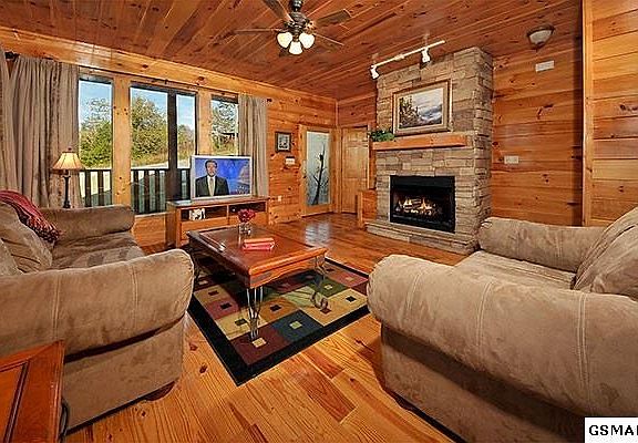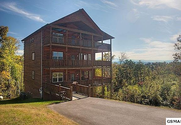 Spacious log home with lovely views from each of the three levels of decks! On it's first year on the rental program in 2014 it grossed $52,030 and is on track to surpass that number for 2015 rentals. Located in a quiet resort just minutes from Sevierville, Pigeon Forge and Gatlinburg! Also enjoy Douglas Lake nearby! You will also find living room space on each level. On the second floor your family or group can enjoy playing a game of pool, foosball or a card game, game room area also features a wet bar. on the top floor deck is where you will find the hot tub to relax in and enjoy the views after a long day of exploring the Smoky Mountains. Each bedroom and the bonus rooms have their own full bathrooms.