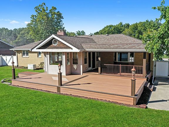 MASSIVE NEW TREX DECK! TWO FIREPLACES! FENCED IN YARD! Ideal location on a quiet tree lined street in town Crete, this mint condition solid BRICK ranch with FINISHED basement, was custom built with QUALITY in mind! Featuring REAL HARDWOOD floors throughout the main level, plus a large FLORIDA ROOM addition off the back, there's nothing like it on the market! Previous owner was a carpenter & added crown molding, built-ins, custom lighting & more. Over 2,600 finished sq ft including 3 bedrooms, living room, family room with corner fireplace & sun room all on the main level, PLUS finished Rec Room WITH BAR & 2nd fireplace downstairs with possible 4th bedroom AND office, finished laundry room AND full 2nd basement bathroom! No expense was spared on the backyard improvements, including white PVC fenced yard, & oversized brand new TREX DECK with covered deck area & custom lighting! Shed for extra storage PLUS newer whole house generator for peace of mind. Inside, the spacious kitchen/dining area features updated Corian counter tops, island, stainless appliances & oversized skylight. Main floor bathroom was recently updated with new CUSTOM TILE shower (separate jacuzzi tub). One bedroom even includes an entire custom closet wall, with built-in shelves & drawers. AC replaced in 2020, furnace & water heater 2019. Whether you like to entertain indoors or outdoors, this home has it ALL!