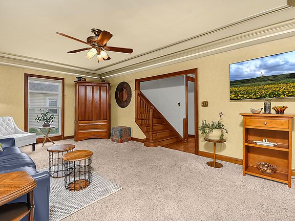 Charming Clintonville Home w/gorgeous stained glass front door-Custom woodwork throughout the home-Large Living Room w/stained glass windows and adjacent to the Sun Room that has tile flooring & lots of natural daylight-Large Dining Room w/parquet flooring & beautiful chandelier-Kitchen w/ tile flooring & Eat-in Breakfast Bar -stunning Kitchen cabinets with glass fronts-Half Bath-3 nice size Bedrooms w/hardwood flooring-Updated Spa like Bath w/marble flooring-Finished Lower Level w/Rec Room, Den/Office & spacious Laundry Room-Lots of storage space-1 Car Detached Tandem Garage-deep enough for 2 cars but back portion of garage is currently a workshop area w/double doors-Storage Shed w/plenty of room for garden tools-Beautiful Paver Patio,fenced backyard that features a garden paradise.