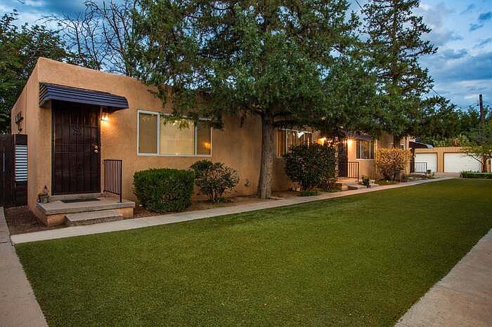 MOVE IN SPECIAL: Reduced Rent for first 3 months - $1,000! Monthly rent of $1,200 to resume thereafter. Nestled in the greenery of the Village of Los Ranchos, the El Pueblo Apartments are steps away from the historic Camino Real, and the original route of Route 66, now known as the newly renovated 4th street corridor. Close to Shops, Restaurants and Retail. Beautifully landscaped common courtyard area and individual Garages. The Apartment has solid surface flooring, thermal windows, mini-split heating and cooling system, recently updated Kitchen with Granite Counters and a Washer/Dryer combo unit in the kitchen and a full Bathroom. Enjoy a private Backyard, community laundry on site as well. 1 well-behaved and trained small pet (up to 25 lbs.) allowed, subject to a one-time, non-refundable pet fee and $30.00/month pet rent. This property allows self guided viewing without an appointment. Contact for details.