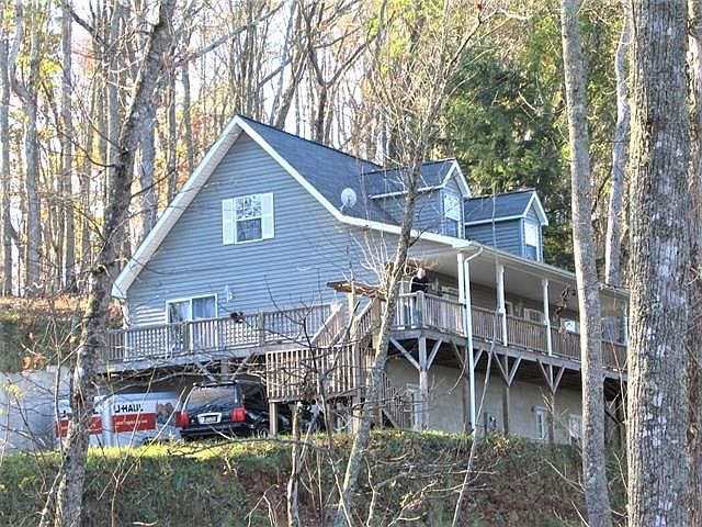 Beautiful,spacious home situated on 30+ acres of Appalachian forest. This unique and private, Mountainside Retreat has 4 bedrooms,2.5 baths; plenty of room for large family or a lot of guests!The main level has a large family room with stone fireplace,dining area, master suite and guest room. The upper level has large bedrooms on each end of the house; lots of storage and full bath. The lower level is finished nicely with a family room and half bath. There is also a large two car garage. The covered deck off the main level is perfect for enjoying nature and has ample room for all your favorite outdoor furnishings. Just a short distance away is the large metal storage building, 38 x 24. There is a nice branch that runs through the property, making this unique property perfect for your second home or full time residence. Large acreage ensures privacy, yet property is only 3 miles to town. Call for your private showing.