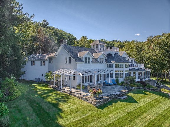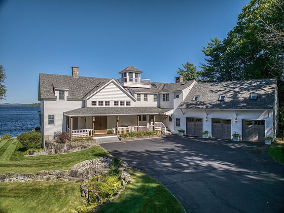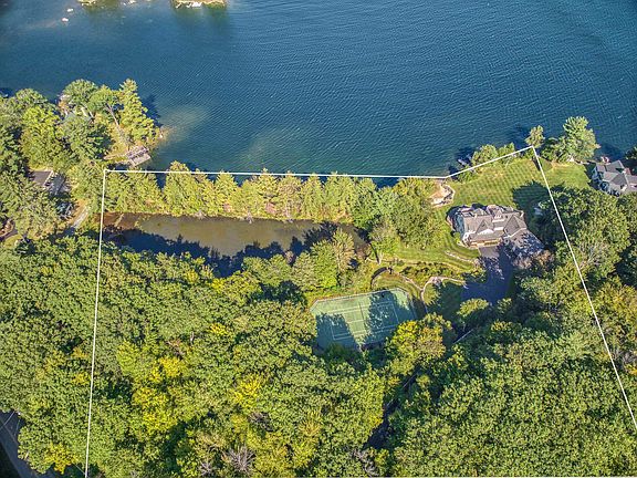 Welcome to Wolfeview . . . A captivating property nestled on 5.6 acres and boasting 648 feet of shorefront on Lake Winnipesaukee with open views down a sweeping manicured lawn to sandy beach and multiple deep water docks/boat slips. Incredible stonework enhances the landscape as does the tennis court and lovely perennial gardens. This post and beam home is professionally decorated in a casually elegant and gracious manner and features 8 BR's and 5 BA's with main floor open concept living consisting of chef quality kitchen with marble counters, breakfast area with separate dining room and open to convenient and impressive seasonal enclosed porch. The connecting living room has beautiful stone wood burning fireplace. The adjacent office has its own separate entrance and lake views. Spacious mudroom entrance contains much storage with connecting laundry room. This easy living home offers multiple spaces to gather with family and friends, both inside and out. The second floor primary suite opens to its own private waterfront deck, large walk in closets and separate dressing or massage room. Spiral staircase to cupola and outdoor deck for sunbathing or enjoying the local fireworks! A finished walkout lower level provides family and game rooms, separate fitness room, half bath, and its own summer kitchen. Loads of storage for all your Lake toys and equipment Fabulous lakeside fire pit with beach sand. Schedule your private tour soon!