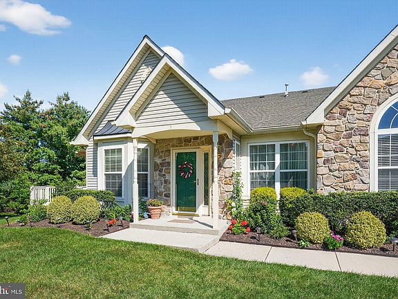Luxury Living at The Villas at Shady Brook. This exceptional Thornhill model, nestled on a premium lot in the prestigious 55+ community of The Villas at Shady Brook, is a must-see. As you step inside, you're greeted by an open-concept living and dining area with soaring vaulted ceilings. The space flows seamlessly into a cozy family room featuring a stunning floor-to-ceiling stone fireplace flanked by elegant sunburst windows. The heart of the home is the beautiful kitchen, which boasts antique white cabinetry, a tiled backsplash, under-cabinet lighting, and a convenient breakfast bar. Just off the kitchen, a dedicated laundry room provides easy access to the two-car garage with ample storage. On the main floor, you'll find two bedrooms and two full bathrooms, including a luxurious primary suite. The primary bedroom features vaulted ceilings, "his and hers" closets, and a spa-like ensuite with a double vanity, a walk in soaking tub with whirlpool jets, and a separate walk in shower. A dedicated office space completes this level. The second floor offers a versatile loft space, perfect for a guest bedroom with a half bath. An additional bonus room in this area provides plenty of extra storage. Outside, a bright sunroom leads to a private deck with a retractable awning, creating the perfect setting for barbecues and outdoor gatherings. Enjoy the privacy and tranquility of a premium lot while still being just minutes from shopping, major highways like I-95, Route 1, and the PA Turnpike, as well as local train stations. This home beautifully blends elegance, comfort, and convenience. Be sure to view the video tour! Don't miss the opportunity to make it yours.