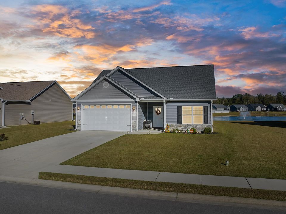 Welcome to 354 Shallow Cove Drive, a beautifully designed 3-bedroom, 2-bathroom home that perfectly blends style, functionality, and comfort. As you enter, you're greeted by a spacious living room featuring a vaulted ceiling and ceiling fan, creating an open and inviting space that's ideal for both relaxation and entertaining. The kitchen, with its own vaulted ceiling, is a chef's delight, complete with granite countertops and modern stainless steel appliances that add elegance and practicality to the heart of the home. The primary suite is a serene retreat, boasting a vaulted ceiling, ceiling fan, and a double vanity in the bathroom. With ample cabinet space and a walk-in closet, it offers both comfort and convenience. The additional bedrooms are generously sized, making them versatile for guests or family members. Luxury vinyl plank (LVP) flooring flows throughout the home, adding a touch of contemporary style. Outside, you can unwind with tranquil views of a pond and fountain, creating a peaceful backdrop for outdoor gatherings or quiet moments. Nestled in the Windsor Farms community in Conway, SC, this home offers the best of neighborhood living. Windsor Farms is known for its serene environment and close-knit feel, while being conveniently located just minutes from the historic charm of downtown Conway. Here, residents enjoy a scenic Riverwalk, local shops, cafes, and easy access to both everyday amenities and the beautiful Grand Strand beaches. Whether you're looking for a relaxing lifestyle or proximity to attractions, 354 Shallow Cove Drive offers it all. Schedule your showing today!