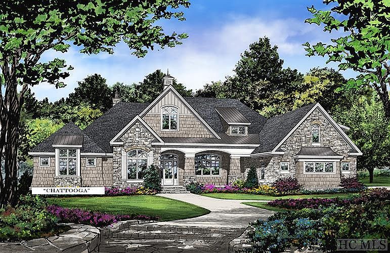 This sprawling hillside-walkout has a captivating presence with staggered gables, a cupola-accented roof, and a stone-and-shake exterior. For those that love to entertain, a formal dining room serves every dinner party need and a spacious breakfast nook provides a place for casual meals. The gourmet kitchen offers an island with prep-sink, allowing ample work space for multiple cooks in the kitchen. A rear screened porch brings endless hours of enjoyment with a fireplace and a skylight-enhanced cathedral ceiling. The master suite boosts an attached sun room for private relaxation, as well as a luxury bathroom and walk-in closets for two. A pantry, over sized utility room, and e-space bring a multi-functional work-center to the home. A master suite is on the first floor, along with two additional bedrooms and a rec room and two additional bedrooms reside on the lower terrace level.The Chattooga is a stylish blend of architectural details that embrace the outdoors in a comfortable and practical floor plan. The exciting ensemble of building materials including cedar shake siding, poplar bark gables, natural stone, cedar shingle roofing plus the detached garage gives this beautiful home irresistible curb appeal. The large open foyer immediately welcomes your guests and entices them into the great room bathed in sunlight through the full wall of windows overlooking the Chattooga River. The home site is blessed with 435' of Chattooga River frontage and 356' of headwater trout stream so the home is surrounded by a total of 791' of water. It is not surprising that the natural surroundings of Stonefly beckons to enjoy all of this scenic beauty from the rear deck and screened porch with fireplace. We currently have a furnished model home that you may preview to see the quality of construction & view the various options that are available in Stonefly , a fly fishing paradise only 1.2 miles from downtown Cashiers and surrounded by the Nantahala National Forest.