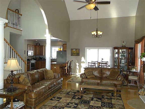 Enjoy peace and serenity in a 44 acre wooded setting. Bring your horses if you like and enjoy country living just minutes to interstates, shopping, and restaurants. This custom built 9 year old brick home designed for one level living features an open floor plan with a fully equipped kitchen with stainless appliances, a great room and a beautiful sunroom to relax and take in the stunning views. The 1st floor laundry has a door that leads to a fenced in area that is great for pets and recreation. Hardwood floors can be found in the living areas and wall-to-wall carpet in the bedrooms and the loft. The master bedroom has an en suite bath, vaulted ceilings and a ceiling fan. A beautiful staircase leads to a 2nd floor loft with a powder room, which is great for guests or a home office. The huge walkout lower level is plumbed for a 3rd bath and offers separate storage areas. There is plenty of parking in the oversized 2 car attached garage and the driveway. An older barn structure is on the property.