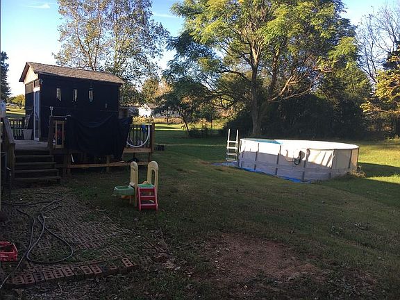 Modular home in good condition. Storage building and screened gazebo off deck. Above ground pool remains Detached outbldg in front does not remain