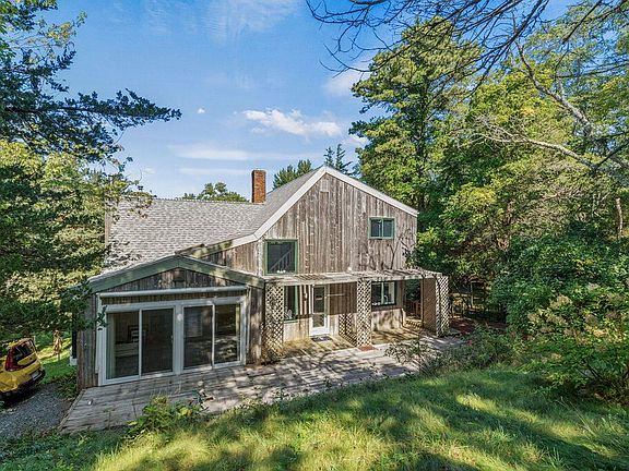 Artsy house with a modern, contemporary flair is looking for a new owner who can appreciate all that it offers. The main level provides an updated kitchen and dining area, first floor bedroom and laundry, and updated full bath. Large living room with a cathedral ceiling and stand-alone fireplace opens to a gracious sunroom. The kitchen and sunroom flow onto the private deck. The upper level has two bedrooms, a balcony overlooking the living room, and another full bath. Stairs (not pull down) lead to a generously sized attic. Large unfinished, walk out basement. Privately situated corner lot with established plantings and gardening areas. There is a detached garden shed with ample storage. Relaxing and special setting. A path leads to a detached garage with an artist studio, workshop, or ''bonus space'' above, outdoor shower and composting toilet. Estate sale. Deferred maintenance throughout - the property is being sold ''As Is''. Garage area in the basement level has been enclosed. Ample parking on Tubman and two more driveways on Griffiths Pond Road. Town water; title 5 septic for 4 bedrooms has passed inspection. House has a generator. Deck extends beyond floor plan.