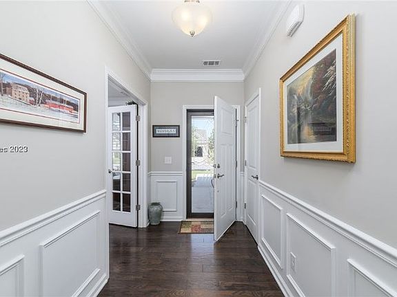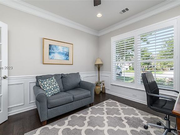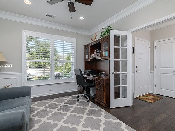 Welcome home to this pristine 2BD 2BA+Den Martin Ray located on a quiet street w a private wooded view. The gourmet kitchen includes granite countertops, Kitchen Aid ss appliances, farmhouse sink, soft close doors drawers, roll-out shelving, butlers pantry and large island. Other upgrades include a screen lanai, super shower, wood flooring throughout (tile in bathrooms laundry), flex room w French doors, ext 2-car garage PLUS golf cart parking, custom drop zone and owners closet. Too many upgrades to list, this is a must see!