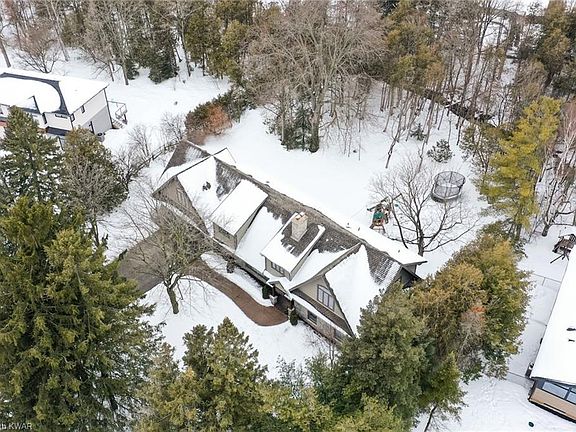 MOST DESIRABLE LOCATION! NESTLED OASIS in Colonial Acres! Is this PRIVATE Custom Dream Home! Situated on a premium 0.92 Acre wooded walkout lot, with a 185-foot frontage on a tranquil street of Waterloo East. This flowing floor plan encompasses over 4200 sq. ft. above grade. 2 Spacious Master bedrooms along with generous walk-in closets and large ensuite washrooms are located one on each level, allowing the main floor very suitable for a potential in-law or guest quarters. This home is complete with 5 bedrooms, 4 full washrooms along with in-floor heating. Architectural features incl., walnut & travertine floors, stone fireplace, solid wood kitchen, oversized island, and chef's hood. Vaulted ceilings on the 2nd level create a unique appeal. This home has 2 furnaces, one in the original part of the home and the other on the upper level. Renovations were completed approximately 2014, items completed were; septic, windows, roof, furnace, sump-pumps, in-floor heating in the kitchen, and bathrooms. The open concept on the main level allows convenience for entertaining, while the upper-level oversized family room allows for more informal family gatherings. The lower-level open concept basement is complete with newer windows (2021), upgraded insulation, prepped with a Dricore Subfloor technology with a R-Value insulated soften floor finish. Perfectly prepared basement awaiting your personal creative finishes, allowing you to create even more useable living space. Enjoy your private backyard with nature at its finest, trees, creek, covered patio for entertaining and barbecuing. Enjoy the green scape with the mature trees, all year long. Privacy at its finest.