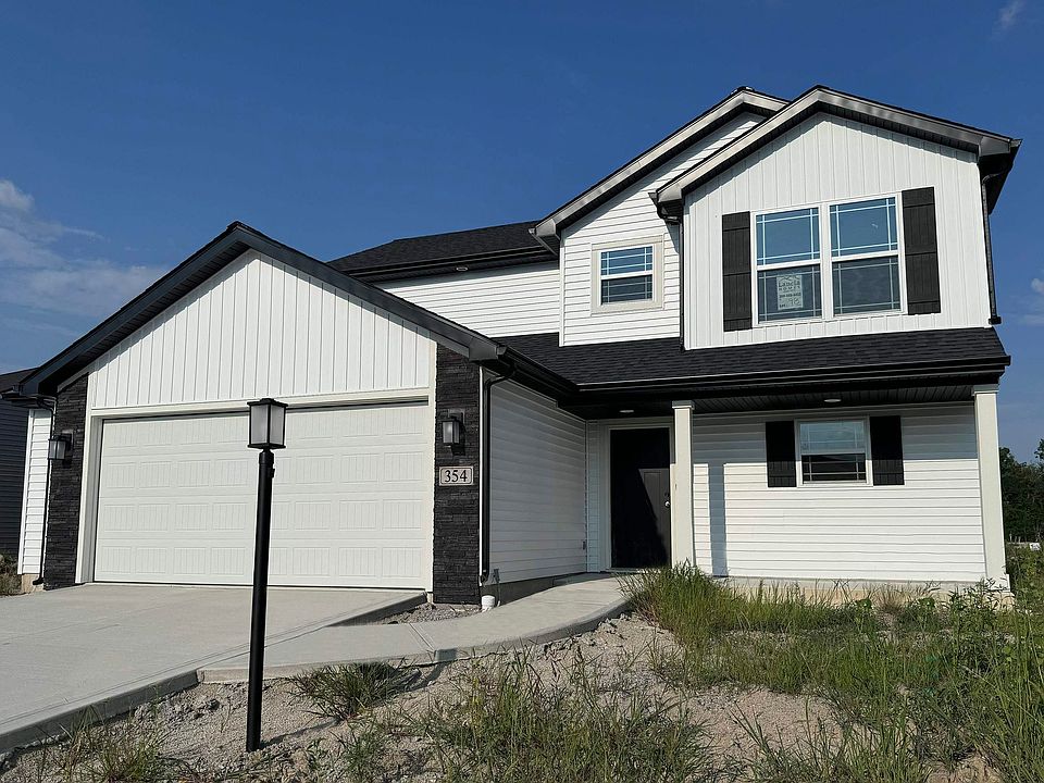Lancia's Wilshire 5 is the Largest of the Wilshire versions at 1,938 sq.ft., 4 Bedrooms, 2.5 Baths and 2-Car Garage with 4' extension. Backs up to some common area on a cul-de-sac. Angled Kitchen with breakfast bar overlooks Great Room with ceiling fan and Nook with sliding doors to 12 x 12 Patio. Kitchen stainless steel appliances, ceramic backsplash, 9 x 5 walk-in Pantry, smooth top stove, soft close drawers, additional gas line hook-up behind stove are standard. Owner Suite Bedroom with ceiling fan has dual rod & shelf 1-wall unit in the walk-in closet and private Bath with dual sink vanity. Laundry Room upstairs. Vinyl plank flooring in Kitchen, Nook, Pantry, Foyer, Baths and Laundry Room. Garage is finished with drywall, paint, attic access with pull-down stairs and has one 240-volt outlet pre-wired for an electric vehicle charging. Designer white laminate wood shelving in all closets. (Grading and seeding after closing per Lancia's lawn schedule.) Home has Simplx Smart Home Technology - Control panel, up to 4 door sensors, motion, LED bulbs throughout, USB port built-in charger in places. 2-year foundation to roof guarantee and a Lancia in-house Service Dept.