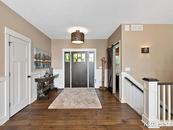 Don't miss this once in a lifetime opportunity to own your next to new, custom-built ranch home situated on 2.8 private acres, overlooking the lake with rolling hills, mature trees, and beautiful landscape. Upon entering the home, you will be wowed by the views from the spacious living and dining areas that open into your gourmet chef's kitchen. The kitchen boasts an oversized granite island, custom cabinetry, stainless appliances and European oak hardwood flooring thru-out the main floor. Lake view from the master suite with trey ceilings & large walk-in closet, laundry, guest room, private office and mudroom with custom lockers are also beautiful features on the main floor. The lower level walkout basement is loaded with natural light, 9' ceilings, exquisite kitchen/bar area with