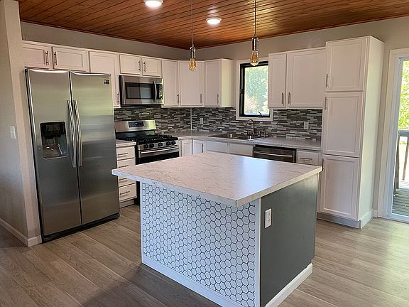 Completely remodeled, this split level home features two bedrooms, full bath, and an open kitchen, dining and living area on the upper level. New kitchen appliances, cabinets, and counter tops. New flooring and cedar ceilings throughout the entire home, fresh paint, new electrical devices and fixtures. Lower level features two bedrooms, 3/4 bath, laundry room and a wood burning fireplace in the second living area. The deck, home and attached garage have been repainted. Garage is 624 sq ft. New septic system installed in June 2020. Spacious .55 acre lot. Minor updates intended to be completed before closing: remaining closet doors and minimal trim work. Located in a quiet neighborhood just outside city limits. *Update: Offer accepted on 11/13.