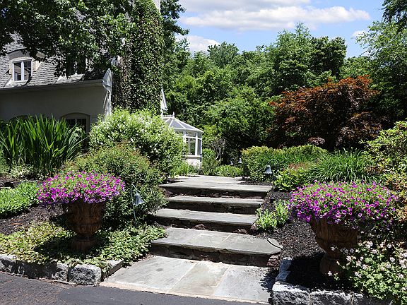 Nestled down a long picturesque driveway, you will be lead through antiqued iron gates to this Custom French Country home on over 3.6 acres outside the Village of Carversville. What was once declared Stone Gate Cottage, this alluring haven has professionally landscaped gardens with extensive landscape lighting, a Bluestone courtyard and terrace, along with charming pebble walkways, which are sure to provide the tranquility you're searching for. Delicate wooded views can be seen from every window. Updated ceramic wood grain floors lay in the foyer, living room & dining room while newly refinished hardwood floors grace the remainder of the first level. The formal living room/study has a custom marble gas fireplace with built-in cabinet surrounds, which leads to an attached solarium imported from England. Unwind in the sun-filled solarium to read a book with your morning coffee, while serenely surrounded by views of the lush outdoors. The large open-concept family room encompasses a stone walk-in fireplace with wood insert and French doors which escort you to an outdoor entertainment terrace and wrap-a-round deck. The atmospheric Breakfast Room is a generous size and is set-off the gourmet kitchen which boasts a Sub Zero refrigerator, custom iron and granite island along with custom cabinetry. Upstairs features an easeful master suite with a private sitting room, gas stove fireplace and a spanning wall of walk-in closets to fill your wardrobe accordingly. The Master Bathroom completes the space with an additional walk-in closet which could handily be used to enlarge the bathroom breadth. Three other bedrooms grace the second floor with a newer full hall bathroom with a skylight. The Lower Level is a finished walk-out basement that is comprised of a kitchenette area, perfect for entertaining, a wine cellar room, and ample storage. A detached 2-car garage with a lofted office/studio space sits above- perfect for an entrepreneur or artist! Mature landscaping surrounds the newly updated in-ground, heated salt water pool with spa. This enchanting and cloistered home cannot be seen from the road! 30 minutes to Princeton and situated halfway between Philadelphia and New York City, this one-of-a-kind home is the perfect combination of convenient location, award-winning schools and luxurious yet serene lifestyle. NEWER HVAC, NEWER Water Softener/Reverse Osmosmosis System, NEW Well Pump, NEWLY renovated salt-water pool, several NEW windows and BRAND NEW carpeting are just a few of the many UPGRADES to this move-in ready home!
