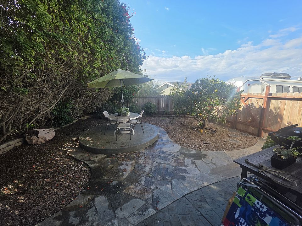 Beautiful 1 bedroom unfurnished downstairs attached apartment on a very quiet ocean view culdesac in old Carlsbad area in an awesome location Private entrance with dedicated off street parking. Private fenced yard with mature landscaping, roses, hibiscus, garden space, raised patio, barbecue, outdoor fire set, patio set w umbrella, and a highly productive and delicious orange tree. Wood burning fireplace. Lots of storage, hardwood and tile floors throughout. Great quiet neighborhood just a few minutes from the beach and village. 5 mins to I5 or 78. Washer /dryer stackable unit. Peek a boo ocean view from the yard and all utilities included in rent! Includes power, water, trash, and high speed internet! Month to month lease, will consider pets. Available November 20th. $2550 per month negotiable plus deposit. Please call Mo by phone for info. All utilities paid by landlord including high speed internet. Month to month lease. Will also consider long term lease options.