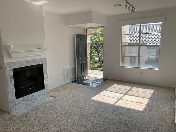 Sunny, upgraded, corner unit in Camino Villas Less than 2 miles from Del Mar beaches Clean, quiet, upstairs desirable corner-end unit (Southwest facing) 950 sq. ft. Plus large deck Master Bedroom has dual sinks Marble & Porcelain tile in foyer, bathrooms, kitchen and around fireplace Granite counter in guest bathroom Full-size washer and dryer included New refrigerator, cooktop, and dryer Freshly painted designer paint throughout Assigned covered parking space Complex has beautiful pool/spa/workout room/lighted tennis court Resort like setting minute to: beaches, award winning schools, racetrack, golf, hiking trails, library, restaurants, shopping, and much more! Current tenants will be vacated by the last week of October. Non-smoking unit Tenant responsible for gas/electricity and internet. HOA covers water.
