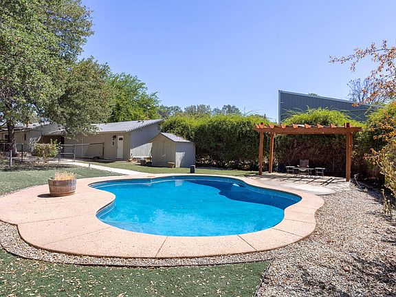 Large circle drive invites you in to this Ranch style home setting on over 3 acres of usable property! Solar, in-ground pool, RV barn and guest unit make this a total package. Recent updates include, large covered patio, ground mount solar panels and siding on RV barn, With an aprox total of 70 solar panels and 7 mini split units you can live comfortably knowing PG&E won't break the bank. Home offers newer laminate flooring and interior paint.