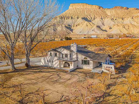 Check out this beautifully remodeled home on 8.5 acres in Palisade. This gem includes 2846 sqft with 3 living spaces, 3 bedrooms plus an office, and 3 baths. The kitchen features a granite island with breakfast bar, gas range, stainless steel appliances, and a custom butler's pantry or wine cellar. Everything is new including central air conditioning system, roof, flooring, windows, doors, paint, fireplace, cabinets, and more. Enjoy amazing views from every window in every direction, and a fabulous East facing patio. The 2 car garage has a heated workshop space too! There is even an option to lease the Pear Orchard if buyer chooses.