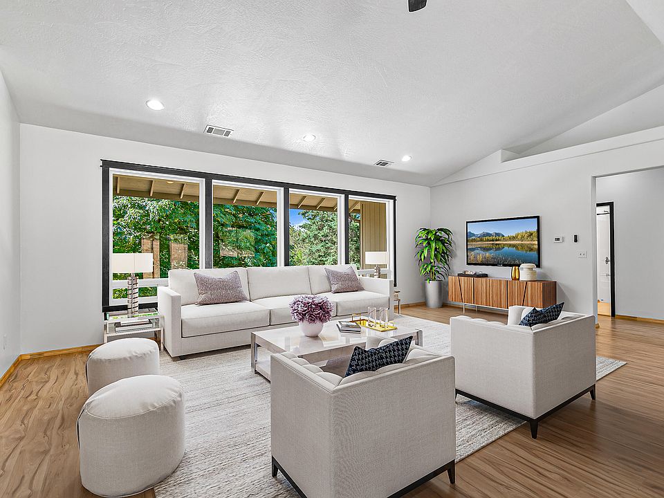 Large windowsVaulted ceilingsOpen floor planFruit treesBrand new countertops