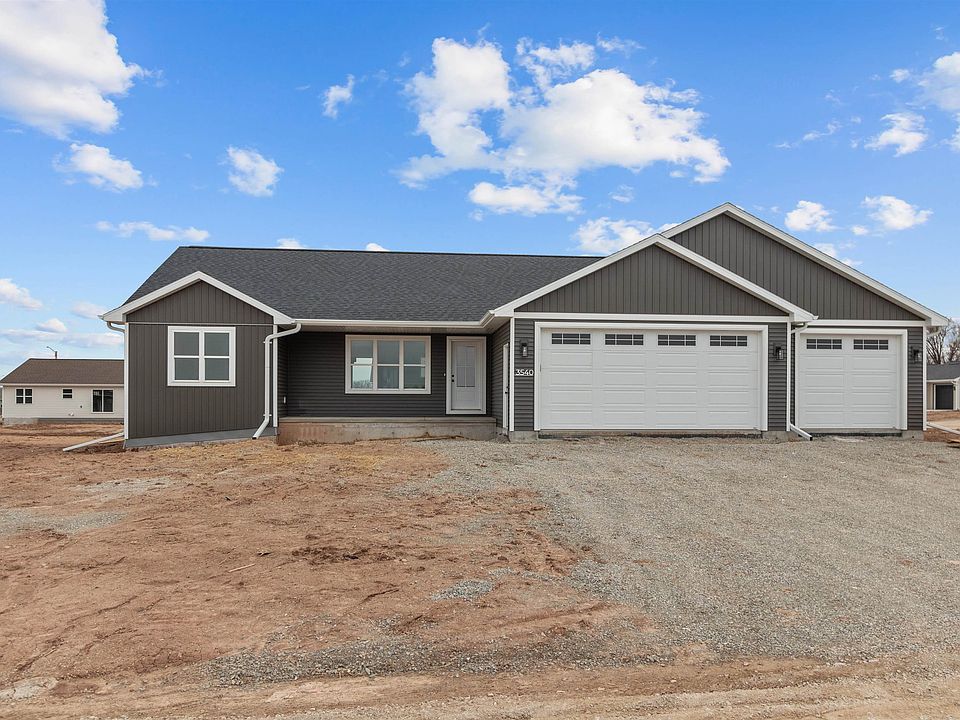 This new 1,497 sq. ft. home by Riverwood Homes showcases exceptional craftsmanship and modern amenities at an outstanding value. The thoughtfully designed floor plan features 3 bedrooms, an open-concept layout with abundant natural light, and high-quality finishes throughout. Highlights include custom cabinetry, solid core doors, wood trim, an upgraded lighting package, and a cozy fireplace in the living area. Additional conveniences include wood closet shelving, a full-length driveway, a 12x12 patio, and an active radon mitigation system for added peace of mind. The basement is stubbed for a future bathroom and includes an egress window, offering the potential for an additional bedroom. A perfect blend of comfort, style, and functionality—all at an exceptional price.